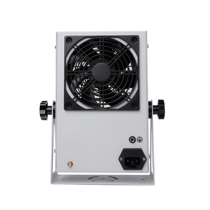 KP101C第六代智能型臺式離子風機由小風機提供風力,風力大小可在觸摸按鍵或遙控器中進行調節。